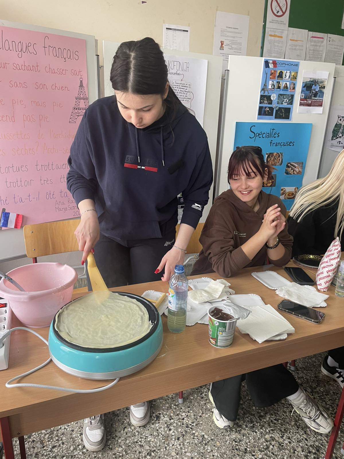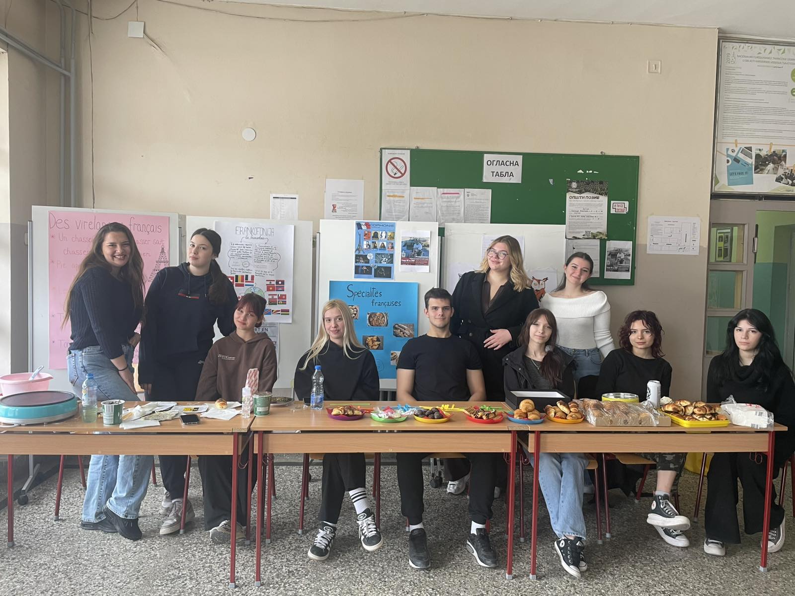 Изненађење је била могућност дегустације ових специјалитета пошто су се неке ученице одлучиле да на овај начин обележе овај дан. Девојке су на лицу места пржиле чувене « crêpes » без којих не постоји ниједан уџбеник за учење француског језика – палачинке, наравно. У понуди су били и макаронси, чоколадни кроасани, кроасани а ла серб, еклери, чоколадни гофрови. Уз сваки слаткиш дељене су и тракице са најчешћим изразима на француском језику, које су ”французи” читали и преводили осталим ученицима, учили их да их што боље изговоре.