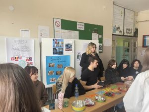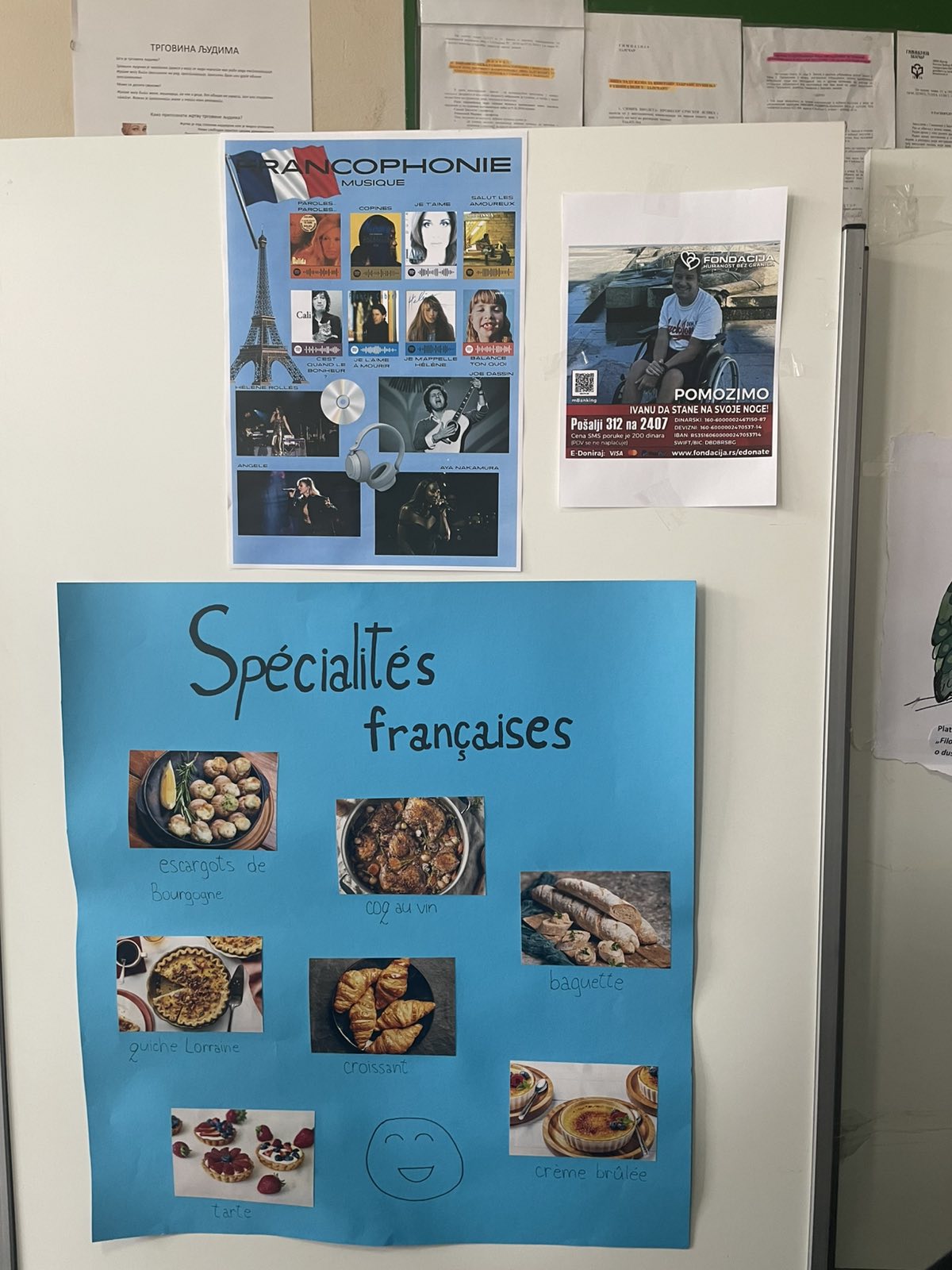 У холу школе постављена је изложба постера које су израдили ученици III и IV разреда који уче француски језик, којима су представили појам Франкофоније, које земље она окупља, потом неке од најчешћих француских брзалица, спорт у Француској, пресек најпопуларнијих француских певачица и певача XX и XXI века са линковима ка њиховим хитовима преко Спотифај апликације, као и постер са типичним, углавном слактим, специјалитетима.